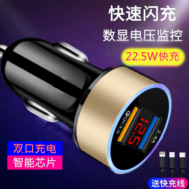 车载充电器双口充电头3.1a一拖二车用插头手机充电器迷你隐形车充