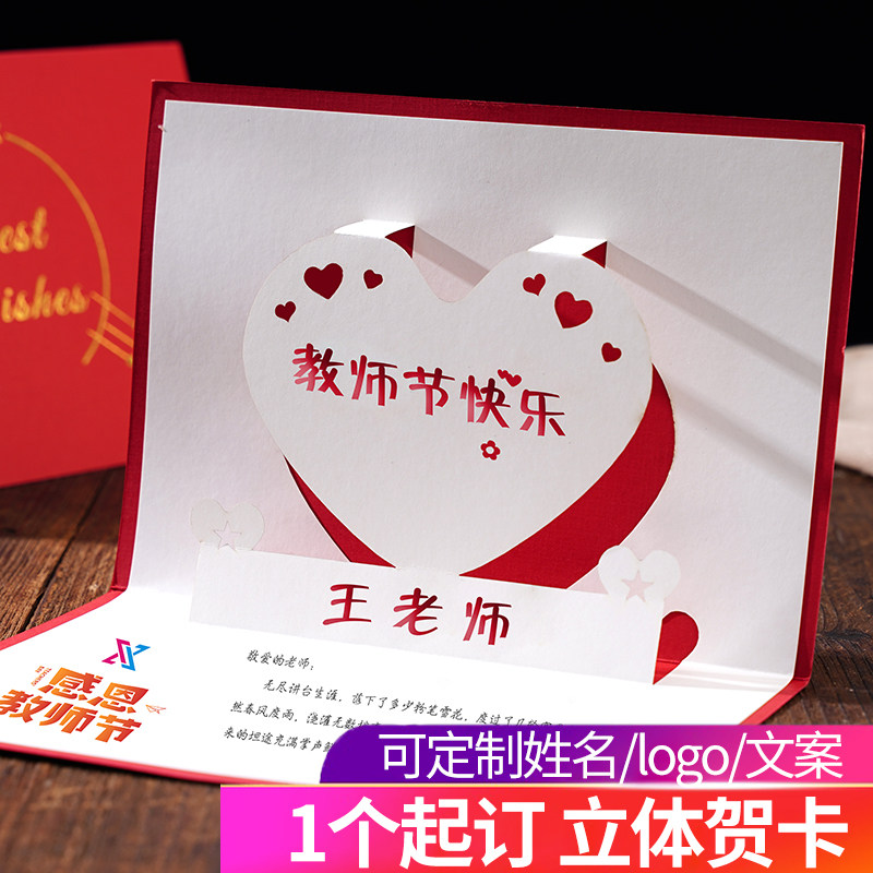 教师节生日纸雕diy手工贺卡礼盒祝福儿童定制照片名字送老师卡片热门设计联盟服务商