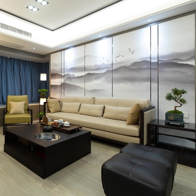 影视壁电视布山水画壁纸布背景墙客厅沙发画新中式墙纸墙壁水墨墙热门设计联盟服务商
