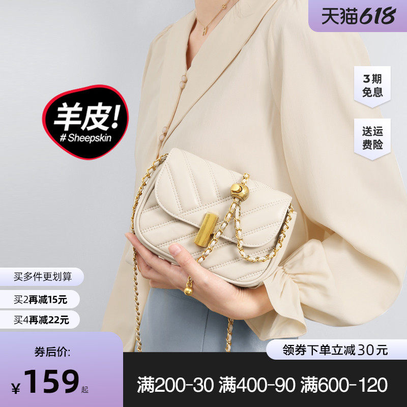 TOUTOU2021新款小众设计马鞍包小香风菱格金珠链条包真皮斜挎包女热门设计联盟服务商